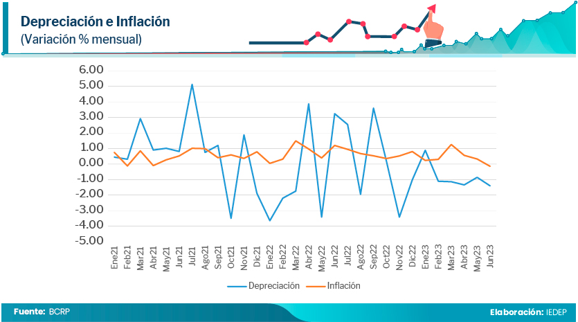 Con estos resultados, si la Reserva Federal decide mantener su tasa de referencia en su nivel de entre 5 % y 5,25 % entonces existe la alta probabilidad de que el dólar continúe depreciándose. El dólar se ha depreciado respecto a las principales divisas del mundo en un 3,1 % en lo que va del año y en 0,2 % en la semana previa al 19 de julio, según indica el BCRP.