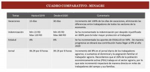 Beneficios.- Los trabajadores agrarios tienen a partir del 01 de enero de 2020 los siguientes beneficios: