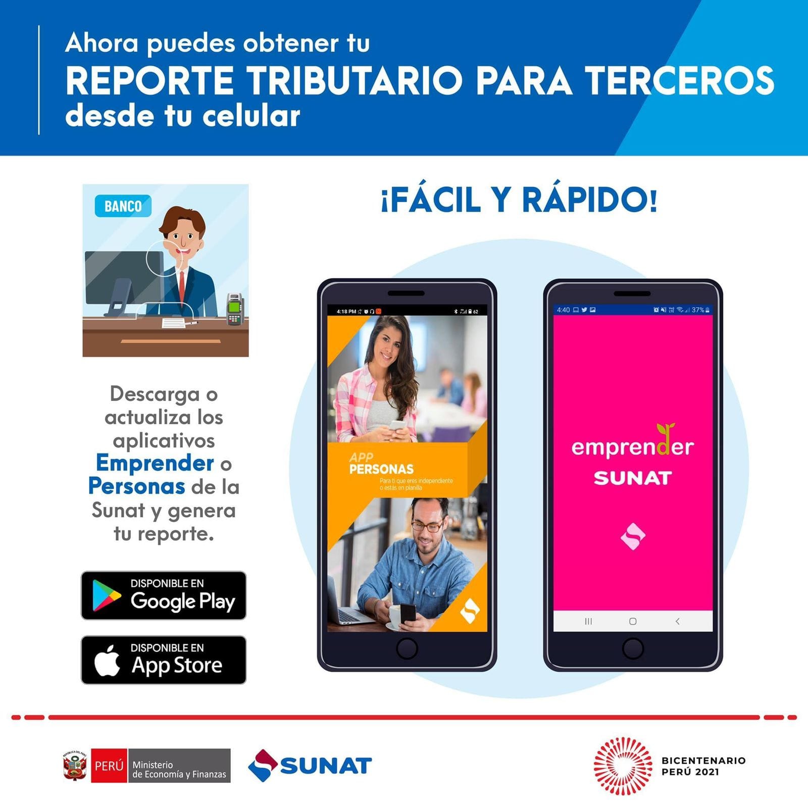 Aunque este reporte puede obtenerse mediante el portal institucional, la forma más sencilla es hacerlo a través del APP Personas o APP Emprender de la Sunat.