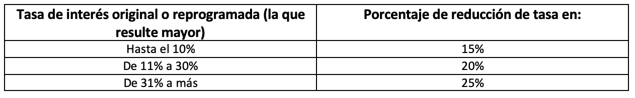 Los porcentajes de la garantía antes mencionada solamente serán aplicables si las ESF reducen el costo del crédito en al menos los siguientes porcentajes: