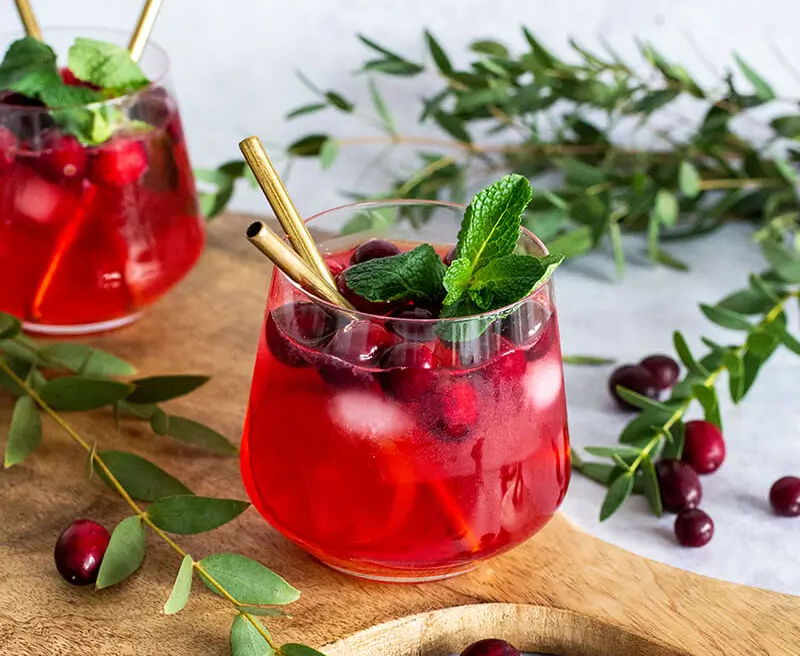 Puedes poner hielo entero o picado, como más te guste a ti, luego los frutos rojos y la ginebra. Termina por añadir la tónica a tu elección y corona con unas hojitas de hierbabuena, le dará un toque aromático y de color.