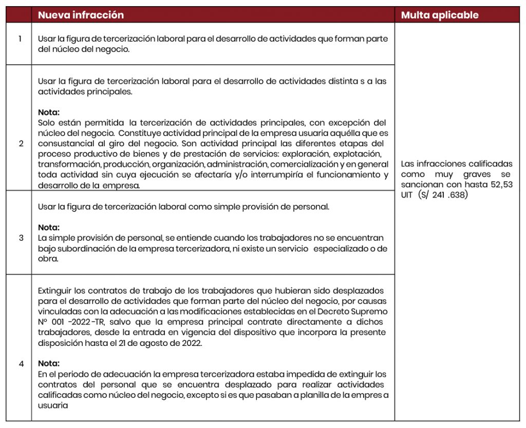 Infracciones muy graves en materia de tercerización laboral