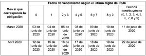 Mediante la Resolución de Superintendencia N° 065-2020/SUNAT, publicada en la edición extraordinaria de las Normas Legales, se dispuso que los contribuyentes que tuvieron ingresos de hasta un total de S/ 21 millones (5 000 UIT), durante el año pasado, efectúen en el mes de junio la declaración y pago mensual correspondiente a los meses de marzo y abril.