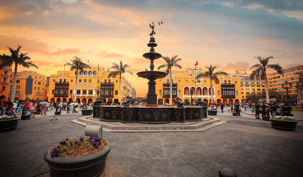 Un lugar perfecto para las fotografías ya que es un espacio donde abundan los jardines, con flores blancas y rojas, los colores del pabellón nacional peruano, están dispuestos y marcados. En todo el centro se encuentra una pileta, con leones alados descansando que lanzan chorros de agua.