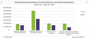 Existen cuatro subsectores dentro del sector metalmecánico: 1) Aparatos eléctricos, sus partes y piezas, 2) Aparatos mecánicos, sus partes y piezas, 3) Manufacturas de metal, 4) Vehículos automotores, aéreos, terrestres y acuáticos, sus partes y piezas. Cada uno de ellos ha disminuido en lo que va del año, por lo que el efecto de la pandemia ha sido global y muy perjudicial para esta industria en general.